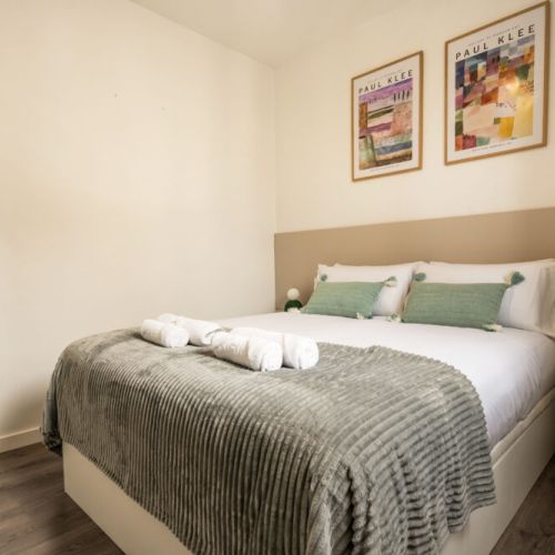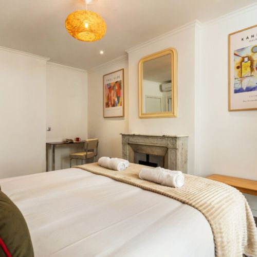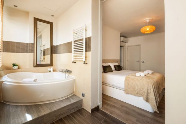 One bedroom opens to a private balcony featuring a bathtub —perfect for relaxing after a day exploring the city.