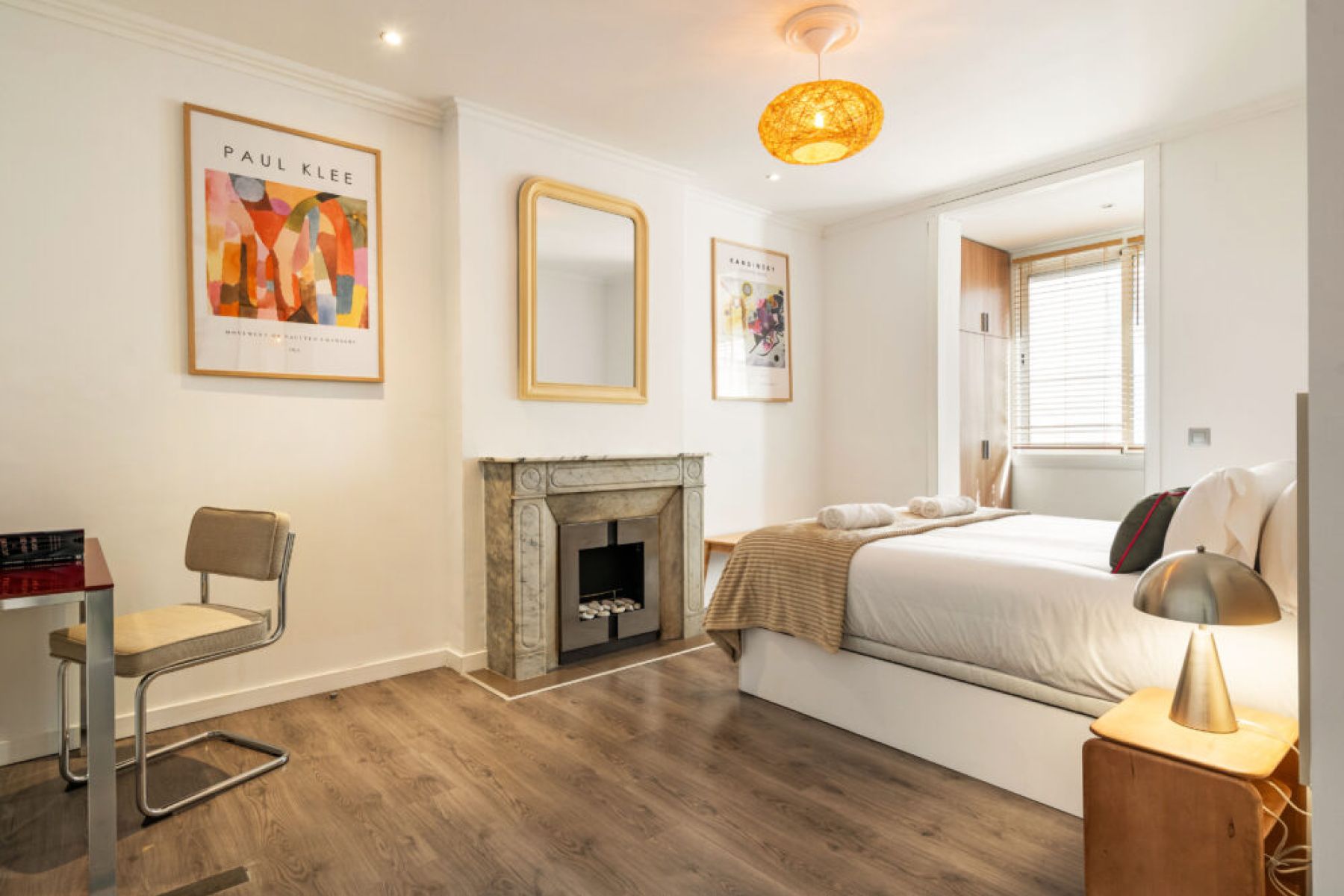 A dedicated desk/work setup in one bedroom plus fiber optics Wi-Fi throughout the apartment.