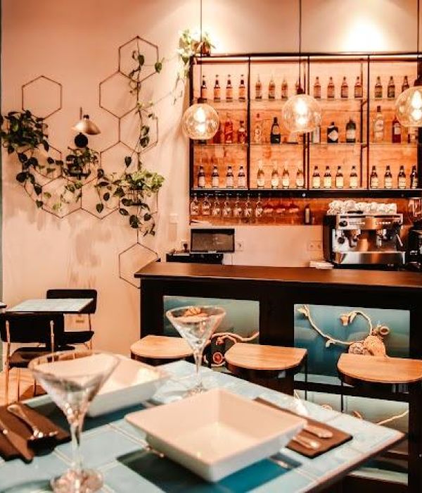 Stylish venue with wood-paneled interiors, serving refined Mediterranean cuisine & tasting menus.